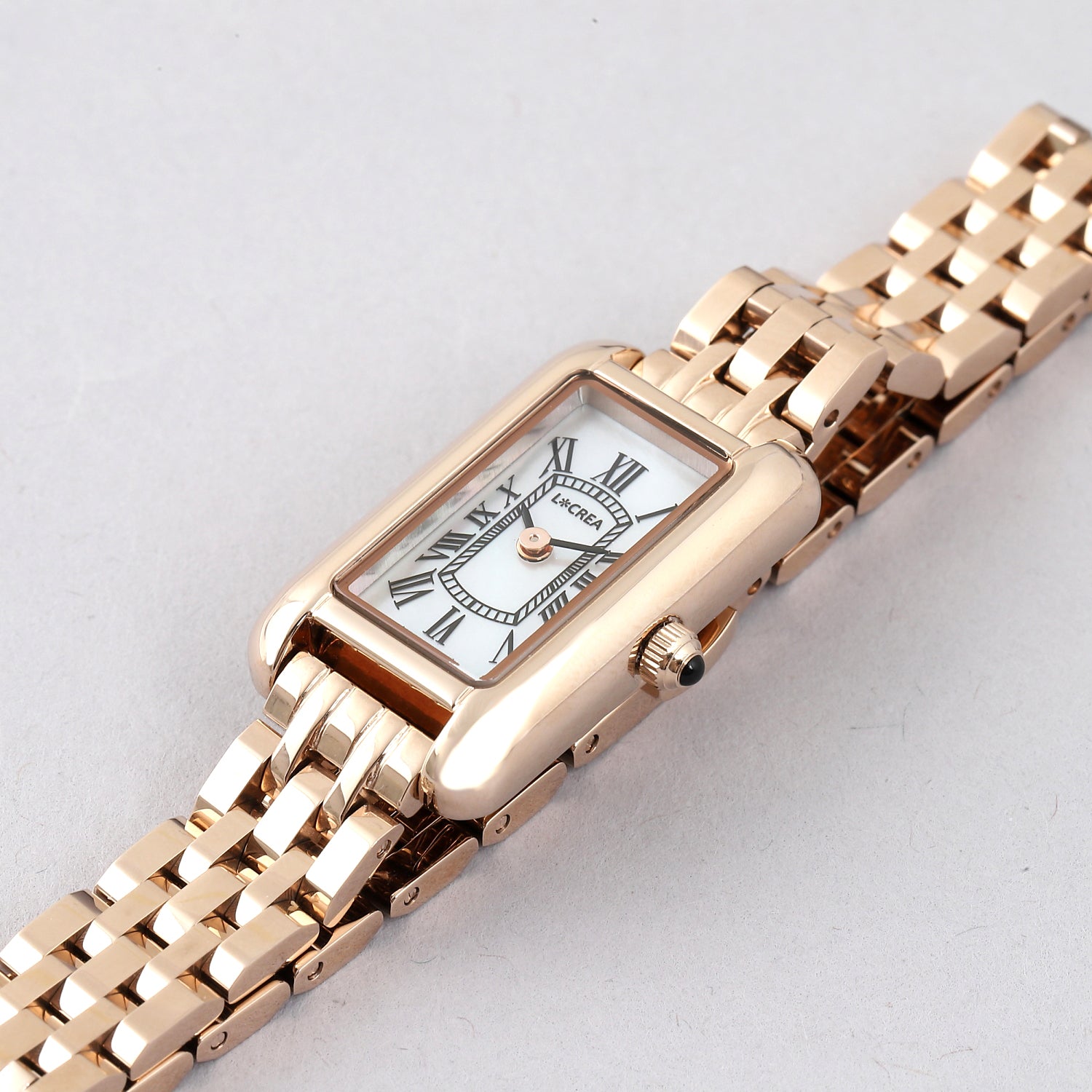 長角の優美さと丸味を帯びた女性らしいフォルムが特徴の「PARALLELA」からミニモデル登場。アンティーク調のクラシックなデザインとすっきりとした細いケースが手元を美しく演出します。